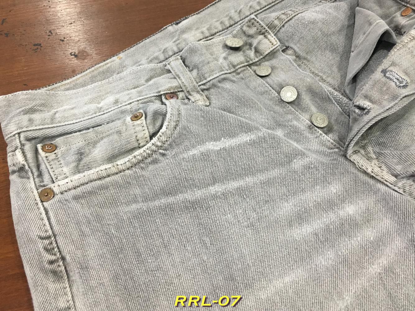 > RRL Jeans กระบอกเล็กเข้ารูป ริมแดง สีเทา เป็นยีนส์ฟอกสีเทา ส่วย สภาพดี