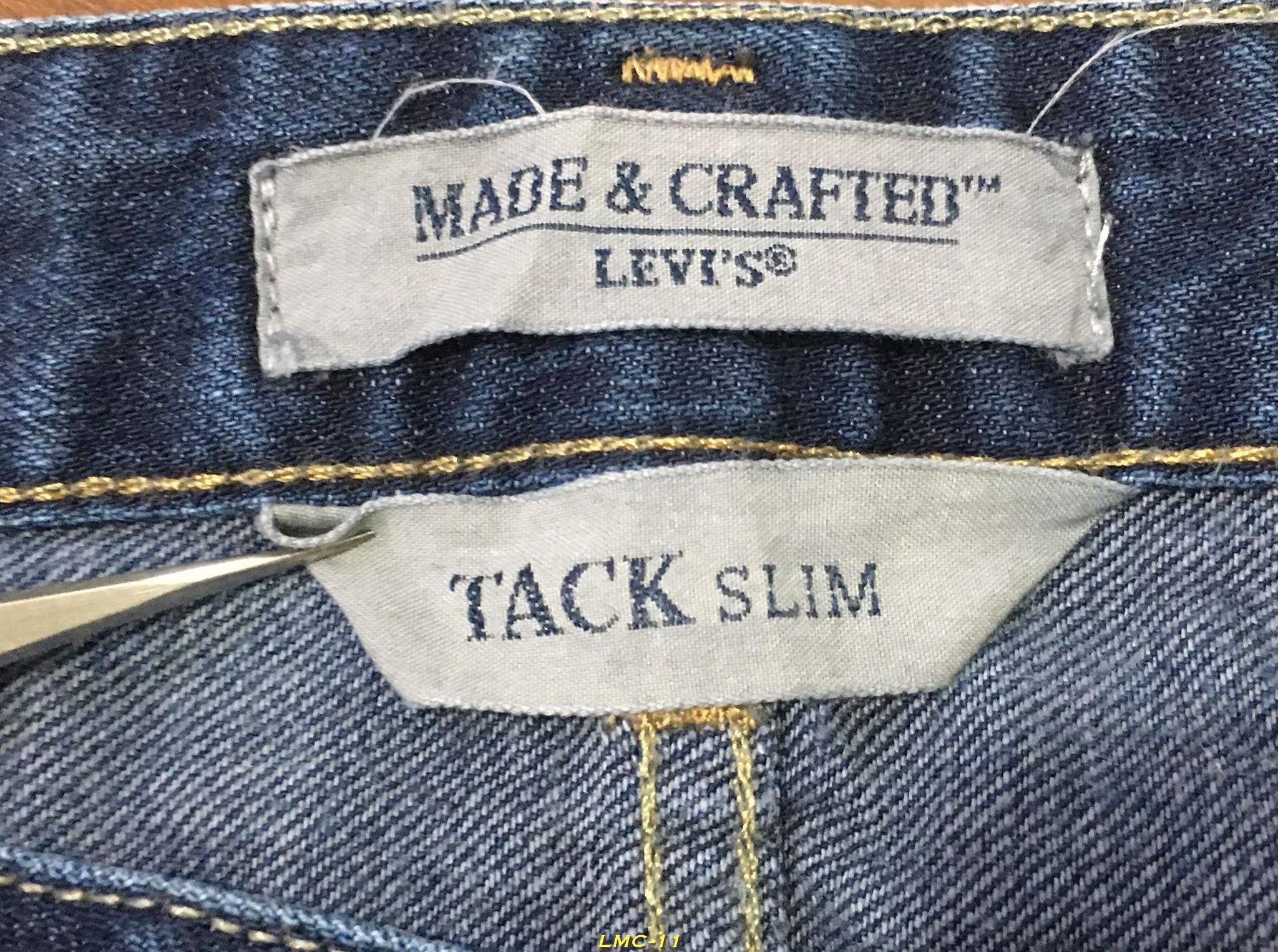 > Levi’s Made & Crafted ทรง Tack Slim ซึ่งถือว่าเป็นตัวPremium ที่สุดของไลน์นี้แล้ว เนื่องจากตัดเย็บโดยใช้ผ้า Cotton 100%11.5 oz. ทรงกางเกงนั้นเป็นทรงกระบอกเล็ก ที่อยู่ตรงกลางระหว่างทรง 511(กระบอกเล็ก) และ 510(Skinny)โดยจะเล็กกว่าทรง 511(ส่วนต้นขาไม่ต่างกันเท่าไรนัก แต่ปลายขาเล็กกว่า) แต่ใหญ่กว่าทรง 510เป็นทรงที่ใส่สบายพอสมควร เนื่องจากช่วงต้นขาไม่แคบมากเกินไป ในขณะที่ปลายขายังเล็กอยู่ ทำให้ได้ลุคที่ค่อนข้าง Modern ในส่วนของกระดุม และหมุดต่างๆ ก็มีการปั๊มตัวหนังสือแสดงให้เห็นว่าผลิตมาใช้สำหรับรุ่นนี้โดยเฉพาะ (ข้อมูล Levi LMC ทรง Tack Slim เพิ่มเติมได้ที่goo.gl/SDj6X9)