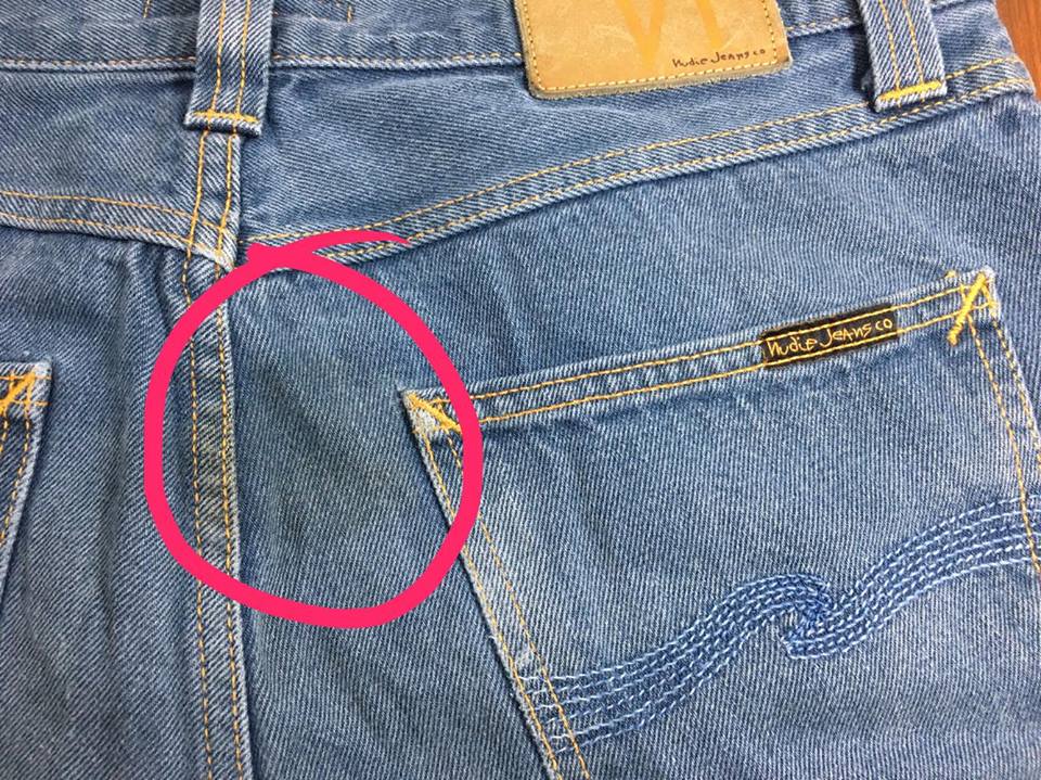 คราบเปื้อนจางๆ ด้านกระเป๋าหลังขวา(ขนาดประมาณลูกกอล์ฟ)