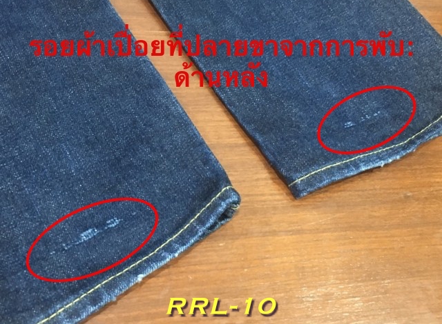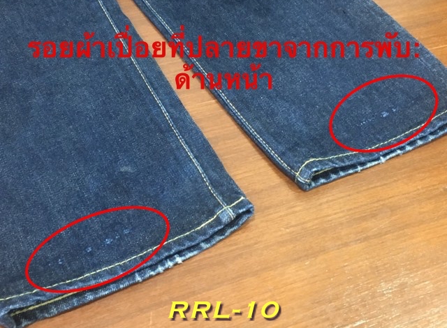 > รอยผ้าเปื่อยที่ปลายขาจากการพับ