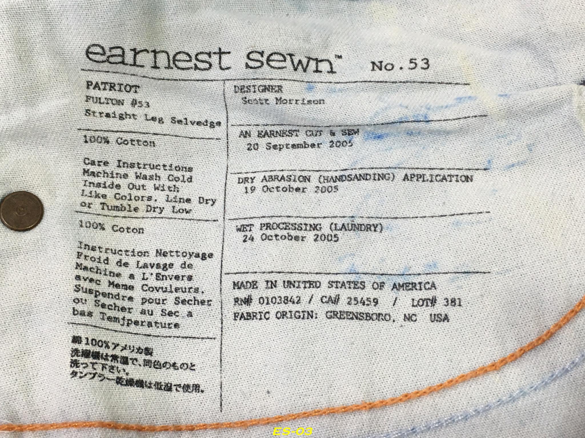 งานของ Earnest Sewn ถือได้ว่าเป็น “The Finest American Jeans” อย่างแท้จริง โดยเริ่มตั้งแต่: