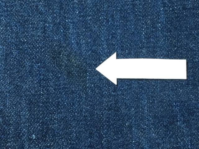 > มีคราบเปื้อนสีเข้มจางๆ ที่บริเวณแข้งขาขวา กว้างประมาณ 1X1 นิ้ว (สังเกตุแทบไม่เห็น) (ดูรูปด้านล่าง)