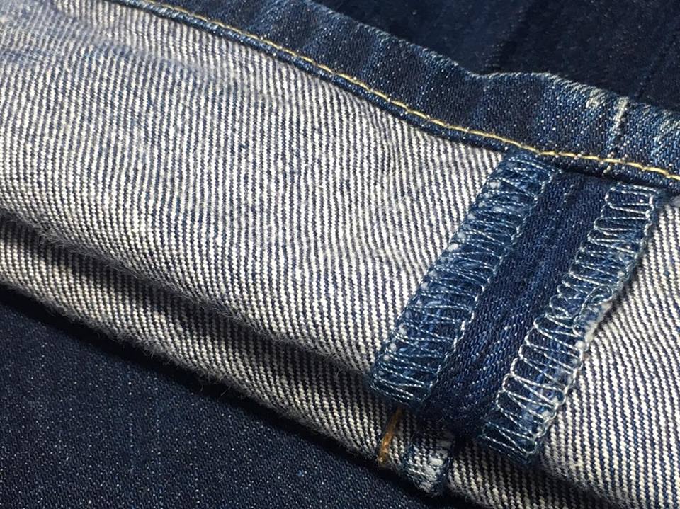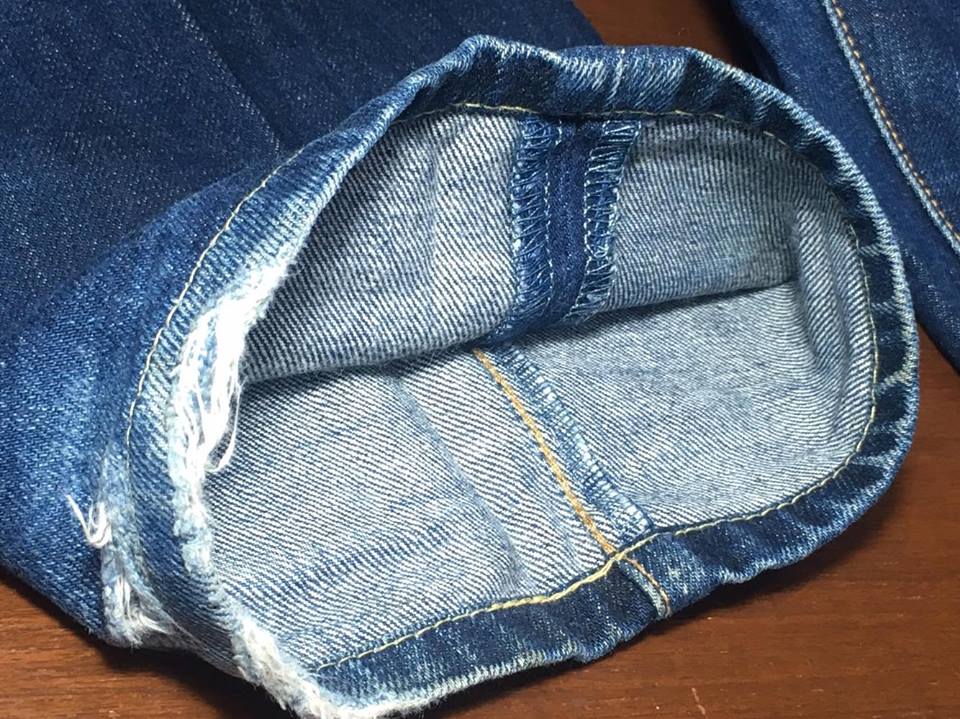 > ตัดขากางเกง และเย็บปลายขากางเกงเรียบร้อย (ปรกติ Capital E ปลายขากางเกงเย็บแบบคู่ แต่ตัวนี้เย็บปลายขากางเกงแบบเดี่ยว)
